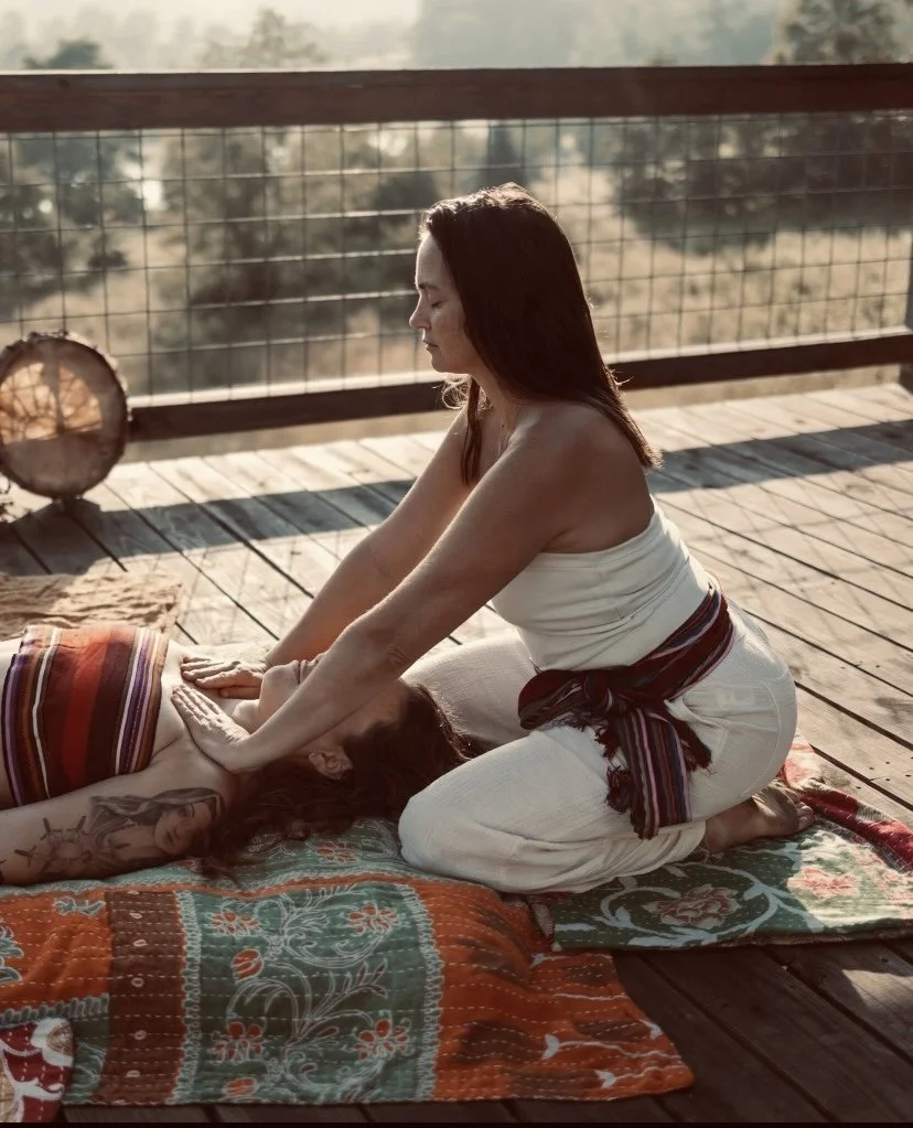 Your mini massage sessions will be held on a cozy mat on mother earth beside the waterfall and can be a yummy blend of any of her practices (except steaming) All accompanied by a homemade white copal and beeswax balm!